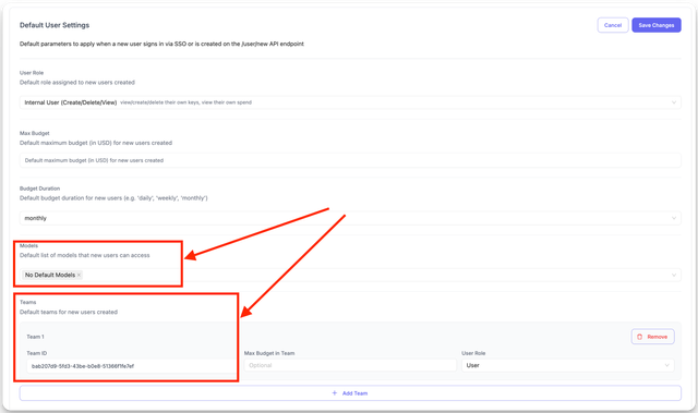 Let's also set the default models to no-default-models. This means a user can only create keys within a team.